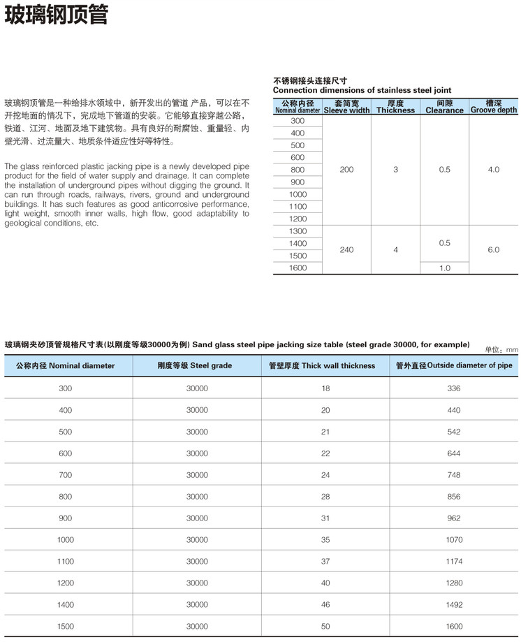 2、玻璃鋼頂管壓縮強度高,管道不易破壞。