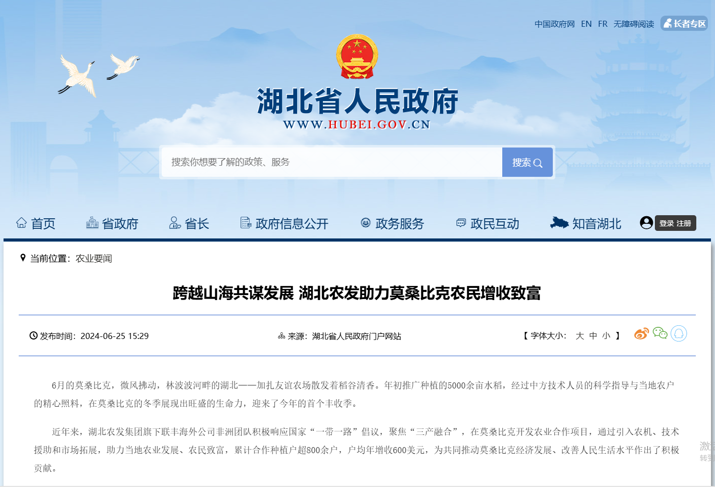 湖北省人民政府:跨越山海共謀發展 湖北農發助力莫桑比克農民增收致富